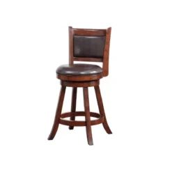The Rhea Swivel Stool reinvents classic design with a comfort and durability you’ll love. This traditional style barstool features everything you’re looking for: padded backrest and seat cushion, built-in footrest, 360-degree swivel, and easy-clean leatherette upholstery. Its flared legs add additional stability and support while you’re seated. Choose from Boraam’s selection of color and height options and find the right fit for your home bar, game room, or kitchen.