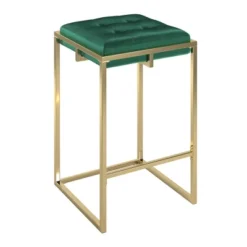 Splash some color in your kitchen or bar area with the Ervyn Gold Finish Velvet Button Tufted Counter Height Chairs (Set of 2) from Inspire Q. Offering one of the most luxurious seats in the house, these stools fit right in with any eclectic or glam theme. Glittery gold-finished metal bases provide stability as they support plush, foam-filled seats. The seats are upholstered in rich velvet and button-tufted for both elegance and comfort. This set of two bar stools comes in your choice of height and color for the velvet upholstery to best suit your design style.
