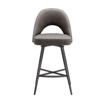 Add some statement-making, contemporary style to your kitchen or bar area with the iNSPIRE Q Ragan 24″ Metal Fabric Swivel Counter Height Chairs (Set of 2). This set displays classic, retro style with half-circle cutouts and thin yet sturdy black metal legs. Dine casually and comfortably, thanks to soft fabric upholstery, plush foam cushioning, and a convenient swivel feature for easy maneuverability.