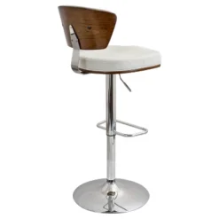 The Mid-Century charm of the Ahoy Counter Stool combines sturdy construction with aesthetic appeal. A walnut wood frame is accented by faux leather upholstery and stylish wood-pressed grain bamboo legs. The comfy padded seat if perfect for long conversations, or a quick morning breakfast. Available in a variety of color combinations, choose the one that suits your space best!