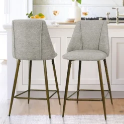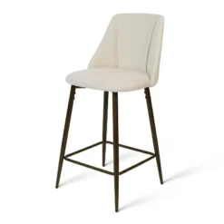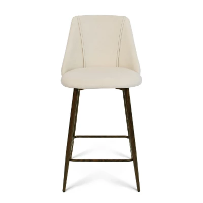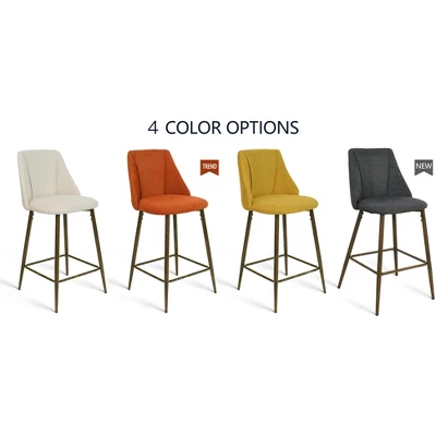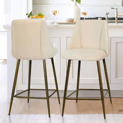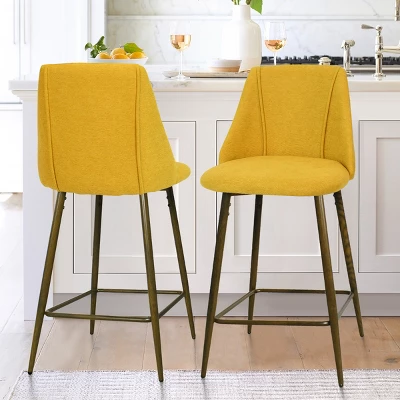 The Pop Maison set of two counter stools brings you a couple of extra spots to enjoy breakfast or dinner around your kitchen island or a taller dining table. Each stool is perched atop slightly splayed steel legs with a matte gold finish for a glam look. The bucket-style seat features a curved back, welted details, and velvet upholstery. Foam padding gives you plenty of support, while convenient footrests on all four sides allow you to relax as you enjoy your morning coffee or a nightcap before bed.