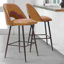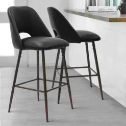 Take your kitchen counter to the next level with this barstool from The Pop Maison. It has generous padding, the super-wide seat is big booty friendly. Slightly pitched open and airy back for extra comfort. The cutout back helps you adjust the waist and bottom to your most comfortable position. Legs are crafted with a sturdy black metal frame, while fixed square footrests offer a convenient spot to rest your feet.