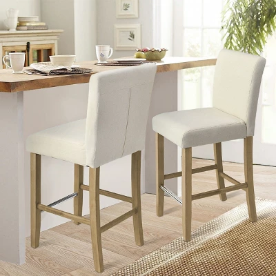 Define your dining area from The Pop Maison,with the elegance of this counter stool. Classic Parsons-style design, but upholstered in soft fabric. With a roomy cushioned seat and back, this stool has a rubberwood frame with a natural finish and a stainless steel footrest. The timeless grey will never go wrong, the soft turquoise is very romantic and clean, the mustard yellow will definitely fresh your area up. This piece could create a beautiful transitional look in your dining room