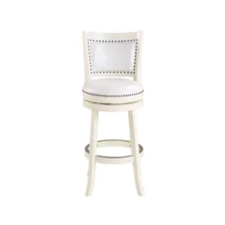 Upgrade the look of your home with the elegant Bristol swivel stool. Together, the sleek frame and lustrous white finish combine with the embellished upholstery to manifest the perfect blend of style. The Bristol is composed of solid hardwood and engineered to perfection. Each leg has a strategic flare design that provides durability and balance to those who sit. The high-density foam used for the seat and backrest issue the maximum level of comfort. Additionally, the steel swivel plate features full ball bearing designs for an effortless three hundred and sixty degree turn. Manufactured with precise attention to detail, the Bristol embodies features that are most important when searching for furniture seating; durability, comfort, and style. The Bristol Swivel Stool is available in counter or bar height.
