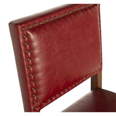 Create a contemporary look in your kitchen, dining or home pub area with the sleek shape and style of this beautifully finished 30″ Brook Bar Stool. Solid legs give this courtly stool additional strength ensuring years of everyday use. The padded cushion will provide optimum comfort for you and your guests and is topped with durable vinyl that is stain resistant, fade resistant and features tightly woven threads that won’t break, mat or peel. Accented with antique nail head trim. 275 pound weight limit.
