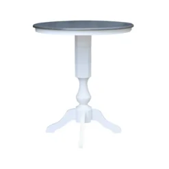 International Concepts home furniture is for those who appreciate high quality, wood furniture with a traditional and elegant look. This piece will beautifully complement your kitchen or dining room. This three piece set includes 1 counter height dining table and 2 stools. The table measures 30″W x 30″D x 35.1″H. It has a pedestal base with four feet for maximum support. It includes one 6″ pedestal base extension allowing you to raise the table to counter height. The stools measure 17″W x 19″D x 38.77″H with a 24″ seat height. They feature box seat construction for easy assembly. The set is made of solid hardwood with a butcher block top design. It has a dual-toned hickory and washed coal finish, and ships ready to assemble.