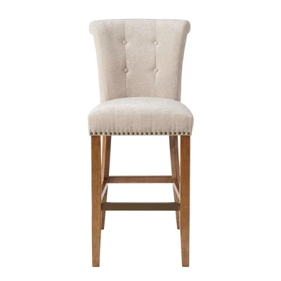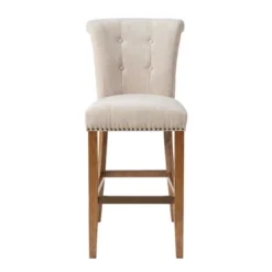 Elegant nail heads add an extra touch of dignified style to this roll back button tufted Lorsted 30-Inch Bar Stool. Assembly required.