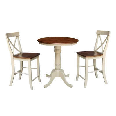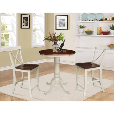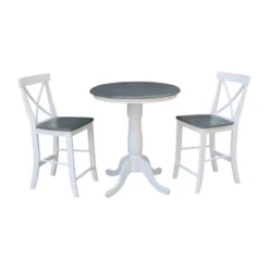 30″ Round Pedestal Gathering Table With 2 X Back Counter Height Bar Stools – International Concepts