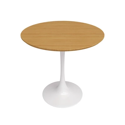 Another thoughtful design from the Kurv Collection, the Kurv Table should be a staple in every modern space. Whether as a dining table for small spaces, a chic desk, or even as a foyer table, it’s a versatile piece that never goes out of style. The minimalist and timeless design blends well in any setting, and can fit nicely in nooks with its round top design. The compact size is great for smaller spaces and makes it easy to configure with one to four chairs comfortably. The wood look paper veneer finish and beveled design of the table top is easy to clean, and the sturdy single stem base is a true space saver. Table measures 31.5 x 31.5 x 30 inches. Minor assembly required.