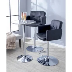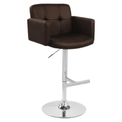 The Stout Bar Stool was designed with comfort in mind. The padded seat, high back and armrests make this the ultimate stool for relaxation. The stool is supported by a polished chrome or black base and hydraulic pole which adjusts the seat height. Get comfy and look great doing it!