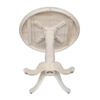 The sleek style of this fixed dining table from International Concepts is the perfect addition to your kitchen, dining room or breakfast nook. This traditional table is crafted from solid wood and is part of a high-quality collection of wood furniture that will easily complement any décor. Parawood – a hardwood known for its durable, strong, and environmentally friendly nature – is used to craft these classic tables. The table anchors a room as a strong centerpiece, and pairs well with a wide variety of chairs and stools from International Concepts. Whether you prefer to use it for nightly dinners, or working quietly on a hobby, this table gives you the practicality as well as the style you need.