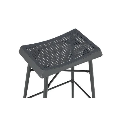 The Carson 3-Piece Pub Set immediately infuses your dining area with a dose of industrial cool. This 3-piece set is crafted entirely from steel with a gray finish. Perforated cutouts dot the stool seats and the tabletop, adding extra edge. The stool seats are molded for comfort and the built-in footrest adds stability and relaxation. Also available in 5-Piece Set. Ships ready to assemble with all hardware included.