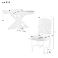 This dining table set includes 4 dining chairs and a lovely butterfly leaf dining table that will enhance the charm of any dining room with its classic retro style. This table is not only extendable but equipped with beautiful cross-base legs, which ensures stability and makes the table more beautiful and delicate. There are two colors for you to choose from. Both colors are the best color combinations, which bring beautiful decoration to your living room or dining room and add some elegance to your home. Your family and guests will like it. No matter where it is placed, it will become an eye-catching ornament in your dining room or living room. Rubber wood chair legs are sturdy and durable, ensuring the service life and a fixed number of years.