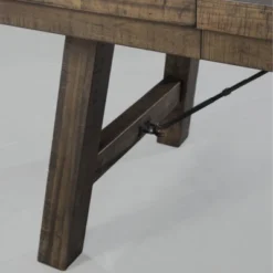 The Picket House Furnishings Dex Dining Set makes rustic entertaining easy. Its smokey walnut finish and earthy wood grain detail create an organic look. Flared legs, turnbuckle accents, and upholstered chairs add a contemporary flavor to this charming set. Make room for more family and friends with its 18″ leaf, extending this table to 78″ long.