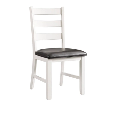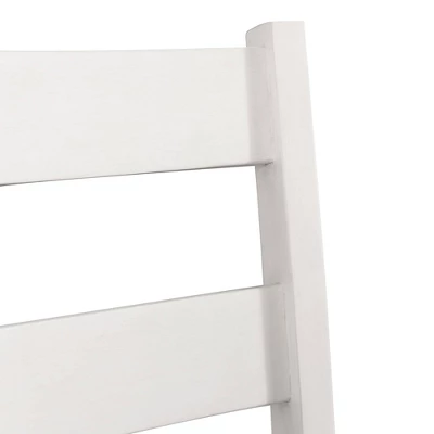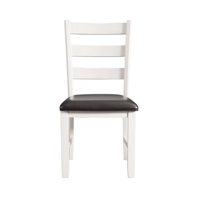 The Picket House Furnishings Kona 5pc Dining Set is the perfect addition to your home! This set includes a table and four side chairs. The rectangle table design will make it an easy fit in your home. The chairs feature a ladder back design and an upholstered seat in a chocolate fabric. The wire brush, white finish on the table base and chairs is truly unique.