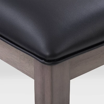 These ladder back classic washed gray dining chairs and table have clean lines and fit perfectly in any space. They have a high back for support and a foam cushion wrapped in a black leatherette that is durable and easy to clean. Coming in a set of four chairs and one table they are a cohesive mix of style and comfort, a great addition to your dining room.