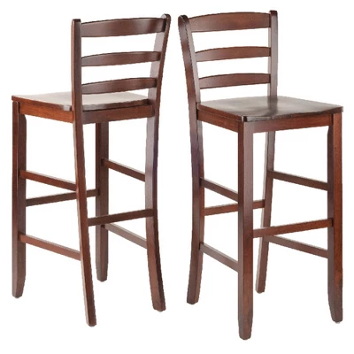 The Parkland 5pc Set High Table with Ladder Back Bar Stools – Walnut – Winsome is a classic square pub table with a warm and welcoming feel. This bar table set has a square table top in a beautiful walnut finish. Ideal for high dining small spaces. Four matching ladder-back wooden counter stools complete the experience. This pub table set is a great place to enjoy a brunch, a bottle of wine or a long conversation. Square Table assembled size is 33.86″W x 33.86″D x 38.98″H. Includes 4 Ladder Bar Stool 16.58″W x 19.35″D x 42.46″H; Seat Dim 16.34″ x 15.55″.