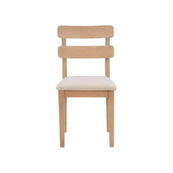 Made to accommodate a family of 6, this modern farmhouse dining set is a one stop shop for formal meals and impromptu nibbles alike. The sleek silhouette and clean lines of the table embody the grace of midcentury design, while the natural wood finish evokes a more rustic charm. Each of the 6 upholstered chair seats feature a solid light beige fabric made from a crosshatching construction giving it a heathered effect. As a bonus, this fabric is performance grade meaning it is made to resist and release stains, moisture, and odors. The solid wood construction and protective lacquer finish ensure stability and protection against wear and tear that you’ll enjoy for years to come.