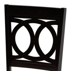 A fusion of traditional design elements and modern craftsmanship make the Lenoir 7-piece dining set a stunning addition to any dining space. Constructed from solid rubberwood in an espresso finish, this dining set includes one table and four chairs, each upholstered in a light polyester fabric that complements the dark wood finish. Padded with foam for the utmost comfort as you enjoy long dinners, each chair features a striking cut-out design on its back for enhanced visual appeal. Comfortable and stylish, the Lenoir set is sure to elevate any dining experience. The Lenoir 7-piece dining set is made in Malaysia and requires assembly. Chair dimensions: 37.4″ High x 17.7″ Wide x 20.5″ Deep; Seating Dimensions: 18.5″ High (from Floor) x 18.5″ Wide x 16.1″ Deep; Back: 18.9″ High; Legs: 16.9″ High