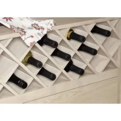 Allowing you to entertain with effortless elegance, the Hayes Counter Table complements any home. Featuring a gorgeous frost finish, the table offers a large tabletop and decorative turned legs. There is ample storage space with open shelving, a center divider to allow use of removeable 22 bottle wine storage or open space, and two large pass through drawers – all accessible from either side of the table.