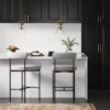The Brockway Counter Stool is designed to give your home fashion and function with a frame crafted of Malaysian Oak with a cappuccino finish and a swivel seat covered in black bi cast leather. The seat back features an inset cushion, also covered in black leather, for comfortable sitting at counters and pub tables. The seat height is 24 inches. Assembly required. Care Instructions: To prevent overall soiling, frequent vacuuming or light brushing is recommended. Cushions and pillows should be turned on a weekly basis. Down filled cushions should be brushed rather than vacuumed. Spot clean, using a mild water free solvent or dry cleaning product. Only a professional cleaner should undertake a complete overall cleaning. The use of steam or water based cleaners may cause excessive shrinking or staining.