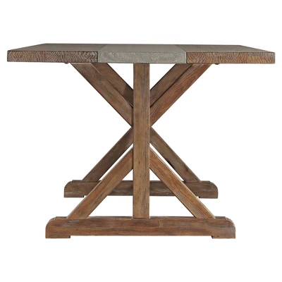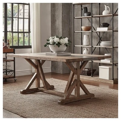 Camilla Farmhouse Concrete Inlaid Trestle Dining Table Vintage Pine – Inspire Q