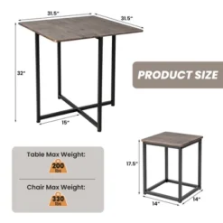 - Easy to Assemble & Care: Equipped with complete accessories, our bistro table set can be easily put together with detailed instruction and assembly video. Moreover, the kitchen table and stools are easy to clean with a wet cloth to maintain. Table dimension: 31.5” x 31.5” x 31” . Stool dimension 14” x 14” x 17.5”(L x W x H).