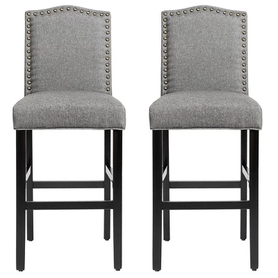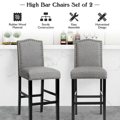 - Simple Modern Style:These barstools are designed with classic gray linen fabric and copper brass nail, which precisely match the noble and modern sense of the users’ home. Except for that, the dark rubber wood legs also add rustic style. These modern and rural barstools are both beautiful decoration and practical sitting chairs.