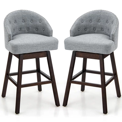 Costway Set Of 2 Swivel Bar Stools Tufted Bar Height Pub Chairs With Rubber Wood Legs Grey/Beige