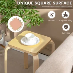 Costway Set Of 4 Colorful Square Stools Stackable Wood Stools With Anti-slip Felt Mats