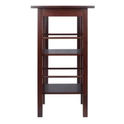 The Walnut Dining Table from Winsome is a versatile and functional addition to your space. The wooden dining table stands tall for easy conversation and features a smooth rectangular tabletop supported by a sturdy walnut frame. It features two open shelves below on one side to keep stemware, drinkware, wine bottles and more at the ready. Completed with six sturdy, square legs, this table can easily accommodate up to four people. The Egan Collection Breakfast Table with Two Side Shelves utilizes its 36.16″H x 44.88″W x 19.69″D stature by including two vertically aligned platforms, the upper with 11.61″W x 15.75″D x 12.2″H of additional space, and the lower with 11.61″W x 15.75″D x 12″H.