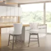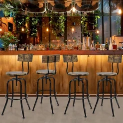 Add a stylish touch to your home bar or kitchen counters with the Elama 2 Piece Tufted Faux Leather Adjustable Bar Stool in Camel with Chrome Base. No handles ensure these stools fit easily side by side without the bulkiness. Features a swivel base and adjustable height with foot rest. This set comes with all the tools you need to put these stools together for an easy and fast assembly. Crafted from quality faux leather and sturdy metal for a strong and long-lasting design.