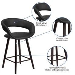 This exquisitely designed black counter stool will add an elegant touch to your home. This upholstered stool will appeal in your kitchen, dining room, bar or game room. The rounded back features a decorative zipper trim design. The durable hardwood frame is stabilized with the included foot ring. The floor glides help protect your floors and ensure smooth gliding, and the lightweight design is easy to move and transport. For attractive and versatile seating, this four-legged stool will fit perfectly in all environments.