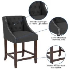Emma And Oliver 24″H Transitional Tufted Walnut Counter Stool