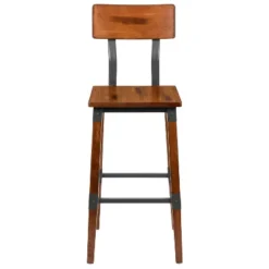 Create a modern, on-trend industrial look when furnishing your establishment with this set of 4 richly hued wood dining bar stool. The marriage of wood and metal blends seamlessly giving this wood dining stool an up to date appearance that will make an attractive addition to your restaurant, lounge, bar or other high traffic venues. The solid beechwood frame has an easy to clean walnut finish, which is an important aspect when it comes to a business. Although designed to withstand the daily rigors in the hospitality industry, this versatile barstool will also provide a warm and inviting quality to your home. The durable wood frame is stabilized with a support bar that includes a footrest to promote good posture and removes pressure from the legs for greater comfort. Barstools are a great design choice for your home bar, pub height dining table or as extra seating for guests in living room. This bar stool chair assembles easily within 10 minutes for quick and easy setup. Plastic floor glides help protect your floors and ensure smooth gliding. The simple style of this restaurant dining barstool will highlight any space in your home or business. Additional Features: Walnut Finished Solid Beechwood Frame with Protective Floor Glides, Seat Size: 15.25″W x 15.25″D x 28.5″H; Back Size: 15″W x 14.75″H, Assembles in 10 minutes or less for quick use, Ideal for your restaurant, café, kitchen, dining room or as extra seating for guests