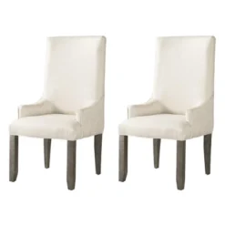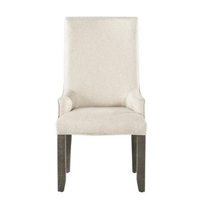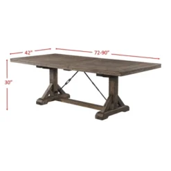 The Picket House Furnishings Flynn Dining Set is dressed in a distressed dark walnut finish, making it the perfect addition to any dining room. This handsome trestle style table features a removable leaf for added space and two chair options to suit your style. The Parsons Chair is upholstered in a cream polyester fabric with wooden legs matching the finish of the table. The back of the wooden side chairs are designed to match the trestles of the table with the same angled panels. Turnbuckle metal accents complete this look of the rustic chic collection.