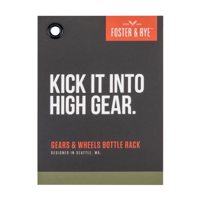 The Gears & Wheels Bottle Holder was designed to fit any home theme with its trendy, industrial-chic style. Perfect for displaying or storing 6 standard wine bottles.Holds 6 standard bottles Cast iron with antique metal finish Rustic horseshoe design 3.2 x 5.2 x 13.5 inchesFoster & Rye combines rugged utility with quality materials and classic vintage stylings for barware accessories that stand the test of time. Discover metal camping mugs, novelty bottle openers, and leather flasks that are perfectly at home on your bar cart or in the great outdoors.