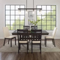 Sure to be the focal point of your modern farmhouse decor, the Hayden Dining Table brings rustic style to family gatherings. Featuring an 18” extension leaf, this table expands to comfortably accommodate up to eight diners. The trestle base of the Hayden Dining Table showcases x-shaped legs, creating a sturdy structure sure to last for years to come.