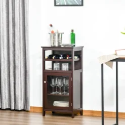 HOMCOM 3 Piece Industrial Dining Table Set, Counter Height Bar Table & Stools Set With Storage Shelf, Rustic Brown