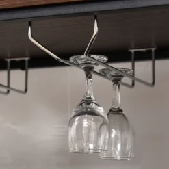 - At Arms Reach: This storage shelf comes with three open shelves and a 3-row glass holder. The wine rack provides plenty of storage for your glassware and dining essentials. The wide countertop can hold dishes, microwaves, plants, or other display items.