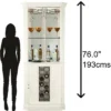 - The lower cabinet features a metal wine rack with a capacity of 13 bottles, and two fixed shelves, which offer storage for spirits, mixers, and bartender’s guides.