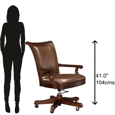 - This Club Chair has a brown faux leather seat cushion and backrest.