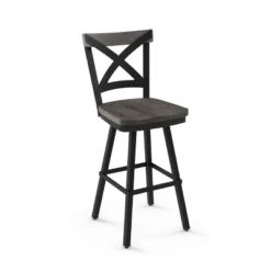 The Jasper swivel stool and its beautiful crossback will blend perfectly with your Farmhouse-style kitchen. Its mix of metal and wood really bring a rustic, warm and cozy atmosphere to any décor. The solid wood seat and backrest accent can feature nail holes, knots, screw marks, deep marks and/or simulated worm holes for a distressed look.