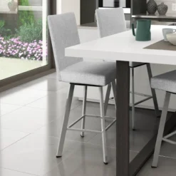 The Jasper swivel stool and its beautiful crossback will blend perfectly with your Farmhouse-style kitchen. Its mix of metal and wood really bring a rustic, warm and cozy atmosphere to any décor. The solid wood seat and backrest accent can feature nail holes, knots, screw marks, deep marks and/or simulated worm holes for a distressed look.