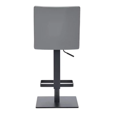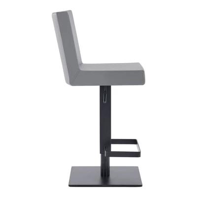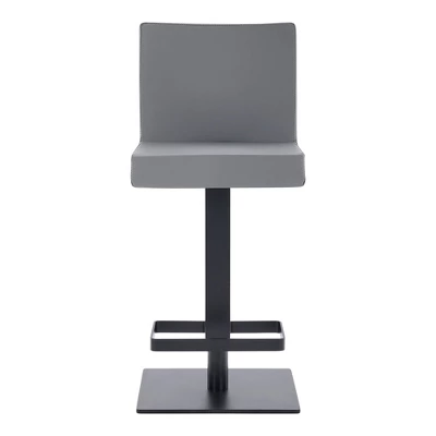 The Legacy Adjustable Height Swivel Gray Faux Leather and Black Metal Bar Stool from Armen Living is the ideal addition to any home or apartment. The square column base serves as a unique design feature as well as keeping you safely stationed and comfortably seated. Wrapped in luxurious faux leather, the high-density foam cushioned square bar seat provides optimal comfort. The armless design also for easy movement and can be moved as close as needed when using with a working surface. Full mobility is at your fingertips with the 360-degree swivel function that allows you and your guests to stay engaged with everyone at parties or gatherings. The Legacy’s high seat back ergonomic properties to keep your back healthy and properly aligned. Incorporate the Legacy kitchen stool into any room of your home regardless of style theme as it’s available in your choice of a brushed stainless-steel finish with Gray or white faux leather upholstery or a matte black metal finish with Gray faux leather upholstery.