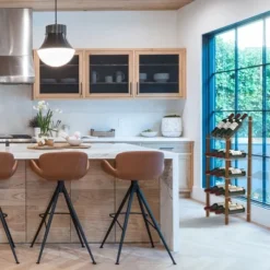 Conveniently store your favorite wines with the Life Story MyWinebar 15-Bottle Wine Rack. Made with a real wood frame and tilted top shelf just like restaurants have, this is a wine shelf you’ll be proud to show off to friends and family.A great gift for any occasion, this wooden frame wine rack fits all standard-sized bottles (about 750ml) and holds up to 15 bottles of wine. The open shelving displays your selection nicely, and the top display is tilted to showcase your 3 best wines ripe for the taking. Designed for wine enthusiasts who like to keep a smaller collection, the wine stand provides a convenient storing system that coordinates well with any decor. Easily move the storage shelf when emptied.Providing a sleek design for your top-notch wine selections, the MyWinebar 15-Bottle Wine Rack from Life Story is the perfect solution for wine bottle storage in your home.