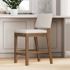 Linus Wood Upholstered Sling Back Barstool – Nathan James