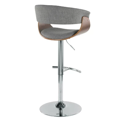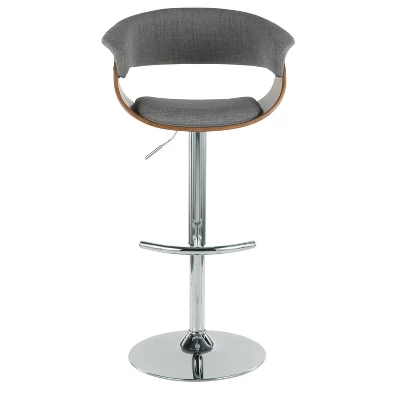 The Mod Adjustable Barstool from LumiSource is a stylish and comfortable seating solution that marries form and function. The cushioned seat and back are artfully curved for a sleek silhouette while the rich wood grain frames the bottom seat cushion for a nod to mid-century modern design. The adjustable base and convenient footrest add practical details to fit your bar or table height requirements. These mid-century modern barstools with contemporary conveniences have a classic appeal that will contribute chic style to your kitchen or bar.