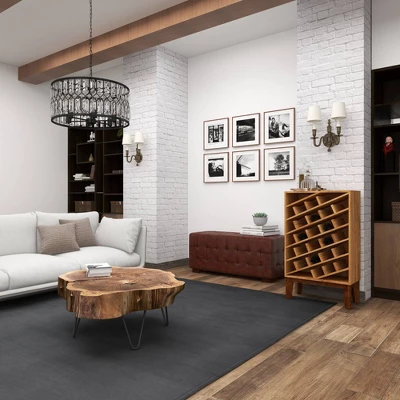 Rectangular wine rack will make a great addition to any space for easy storage and display of your favorite wine bottles. Designed with felt or rubber stoppers at the base that prevent scratching furniture and table tops, as well as sliding around. This item ships in 1 carton. The wine holder can hold up to 30 bottles of wine. Suitable for indoor use only. This item ships fully assembled in one piece. Maximum weight limit is 100 lbs. Made in India. This is a single brown colored floor wine rack. Modern style. Brown standing wine rack can hold 30 average wine bottles.