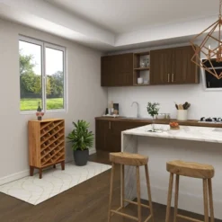 - •A modern wine rack carries a natural light brown finish with dark brown legs and base frame
